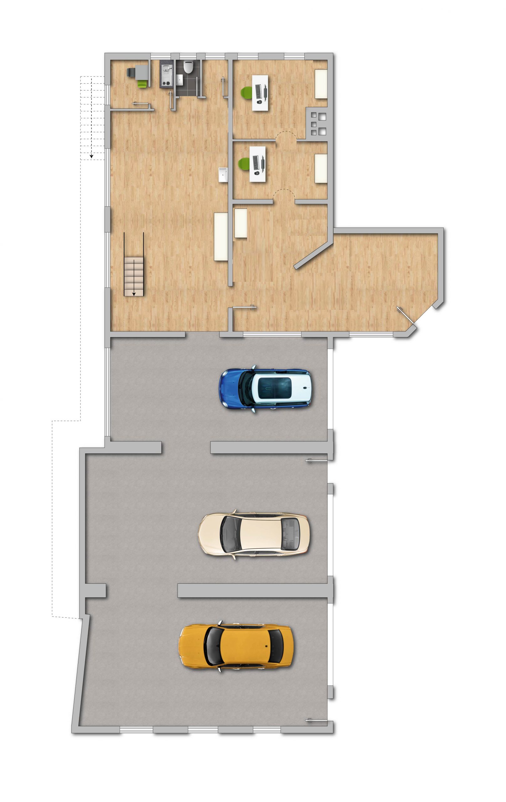 + Fußboden – monolithischer Stahlbeton flügelgeglättet