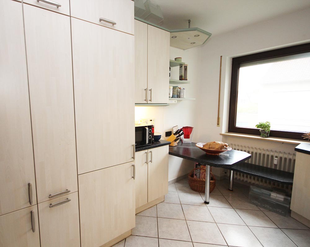 Die Küche liegt separat. Eine Einbauküche kann auf Wunsch vom Vormieter übernommen werden. Idealerweise ist diese mit einem kleinen Essbereich versehen.