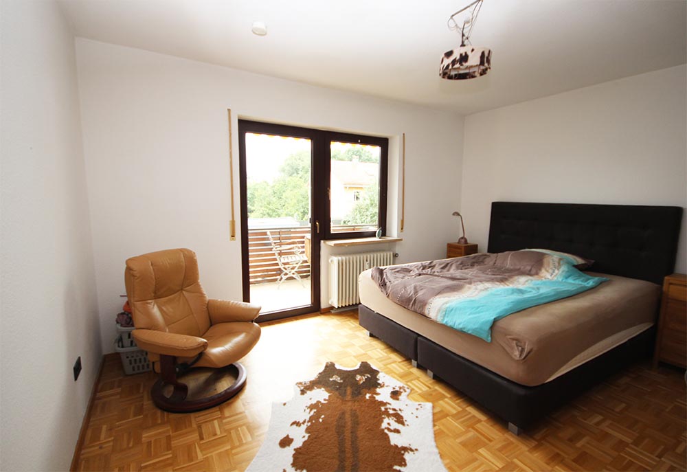 Zwei weitere Räume finden sich im Anschluss, die perfekt als Kinder- oder Arbeitszimmer genutzt werden können. Das Schlafzimmer ist gut geschnitten und bietet ebenfalls wie das Wohnen den Zugang zum Balkon.