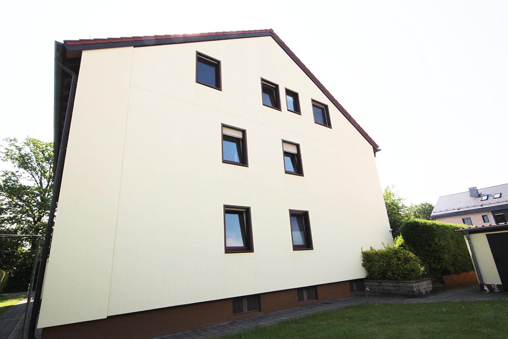 In der Nähe des Klinikums in Neumarkt integriert sich das Eckgrundstück des 7-Parteien-Hauses harmonisch in die Nachbarschaftsbebauung ein.